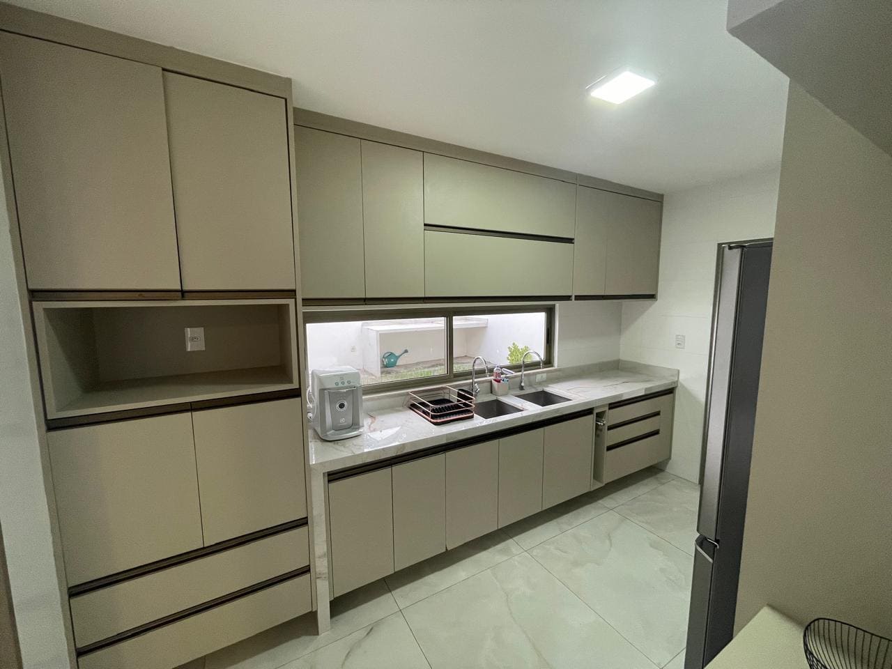 Casa com planejados em todos os quartos, luminárias, cortinas, espelhos nos banheiros e aparelhos de ar condicionado, além de finamente mobiliada.