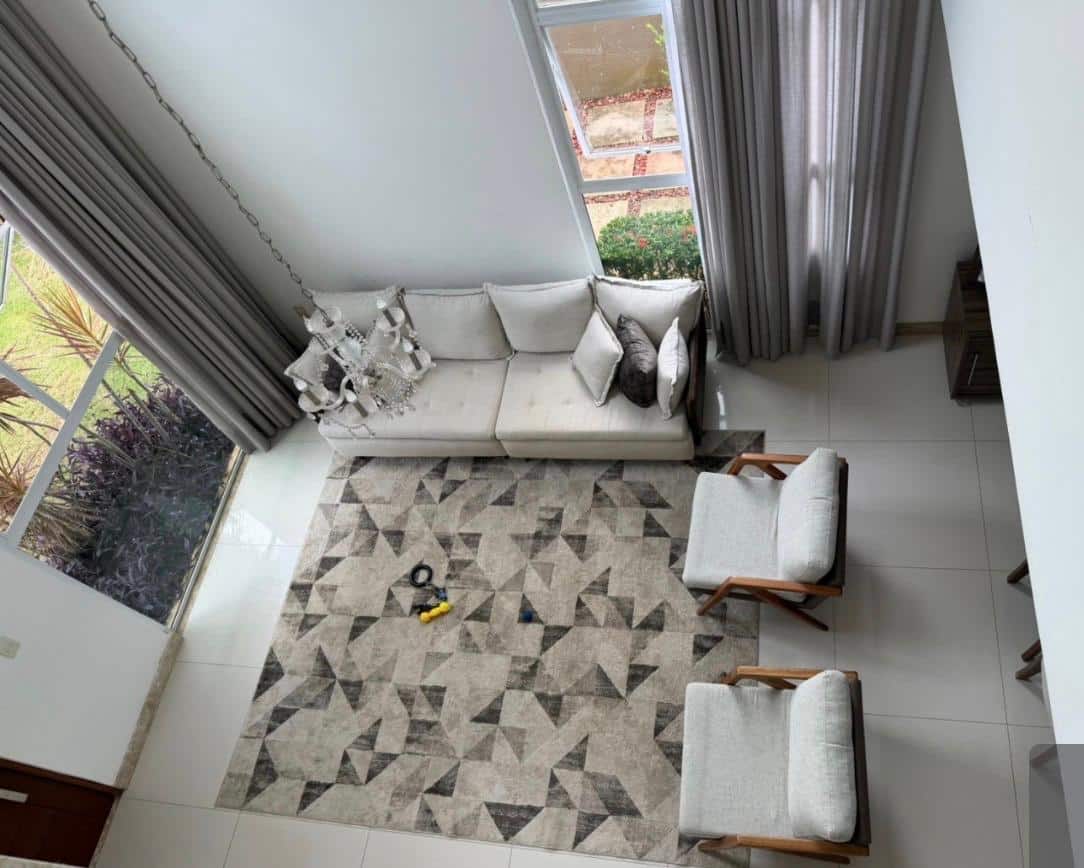 * Pé direito duplo na sala de jantar